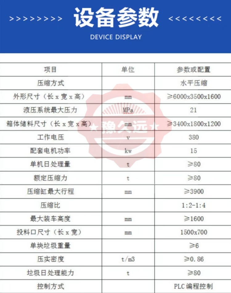 ◇平穩(wěn)可靠:兩側(cè)舉升,剪叉跨度大,升降平穩(wěn),無(wú)傾斜; ◇淺地坑:地坑深度僅為1.55m,保潔及維修極為方便; ◇高效率:壓實(shí)每噸垃圾時(shí)間≤10min; ◇全封閉水平壓縮:采用水平壓縮方式,垃圾壓縮密度≥0.86t/m3,垃圾壓縮后體積大大減小,從而大幅度提高轉(zhuǎn)運(yùn)車輛裝載量和轉(zhuǎn)運(yùn)效率,降低垃圾處理、轉(zhuǎn)運(yùn)等費(fèi)用; ◇動(dòng)作少,故障率低,整套設(shè)備的垃圾壓縮、裝車由三個(gè)動(dòng)作完成,簡(jiǎn)單實(shí)用,各動(dòng)作之間安全互鎖,防止操作人員誤操作造成安全事故,安全可靠; ◇垃圾儲(chǔ)存、壓縮及寄存全部在地面以下,地面上沒(méi)有垃圾散落,對(duì)環(huán)境影響較小,環(huán)保性好;垃圾壓縮后密度高,水份少,可避免汽車運(yùn)輸中的垃圾散落、污水滴漏現(xiàn)象,避免二次污染; ◇土建費(fèi)用低,占地面積小,可以不蓋大型工作間,既節(jié)約了投資,也縮短了工期; ◇留有專門(mén)的維修窗口,維修保養(yǎng)方便; ◇設(shè)有固定式操作和遙控器兩種操作模式,方便實(shí)用; ◇自動(dòng)化程度高,可大幅提高工作效率,降低勞動(dòng)強(qiáng)度。